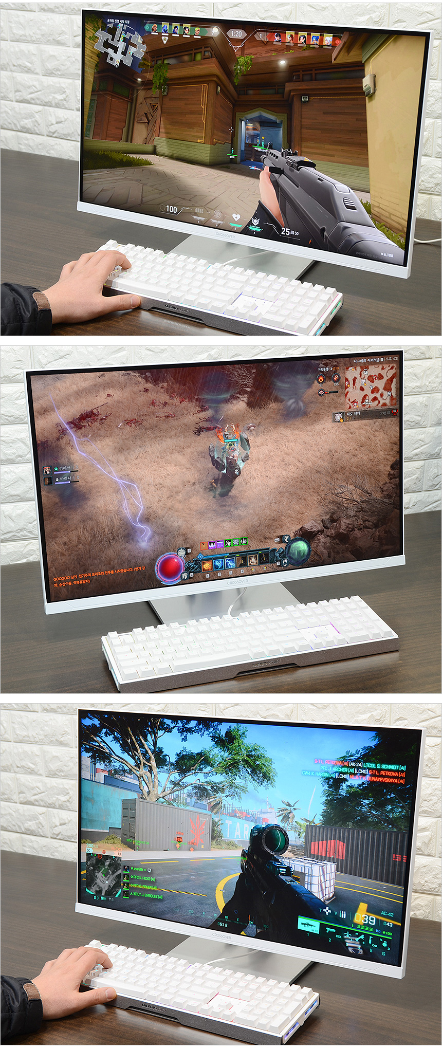 발로란트, 디아블로 4, 배틀필드 2042를 이용해 게임 테스트를 진행하고 있는 모습으로 골드소재 접점부를 적용하고 1000Hz 폴링레이트를 지원하는 모델답게 조금의 딜레이도 허락하지 않고 즉각적으로 반응하는 것을 확인할 수 있었으며 낮은 키압으로 장시간 게임을 실행했을 때 손가락의 부담이 크지 않았다.