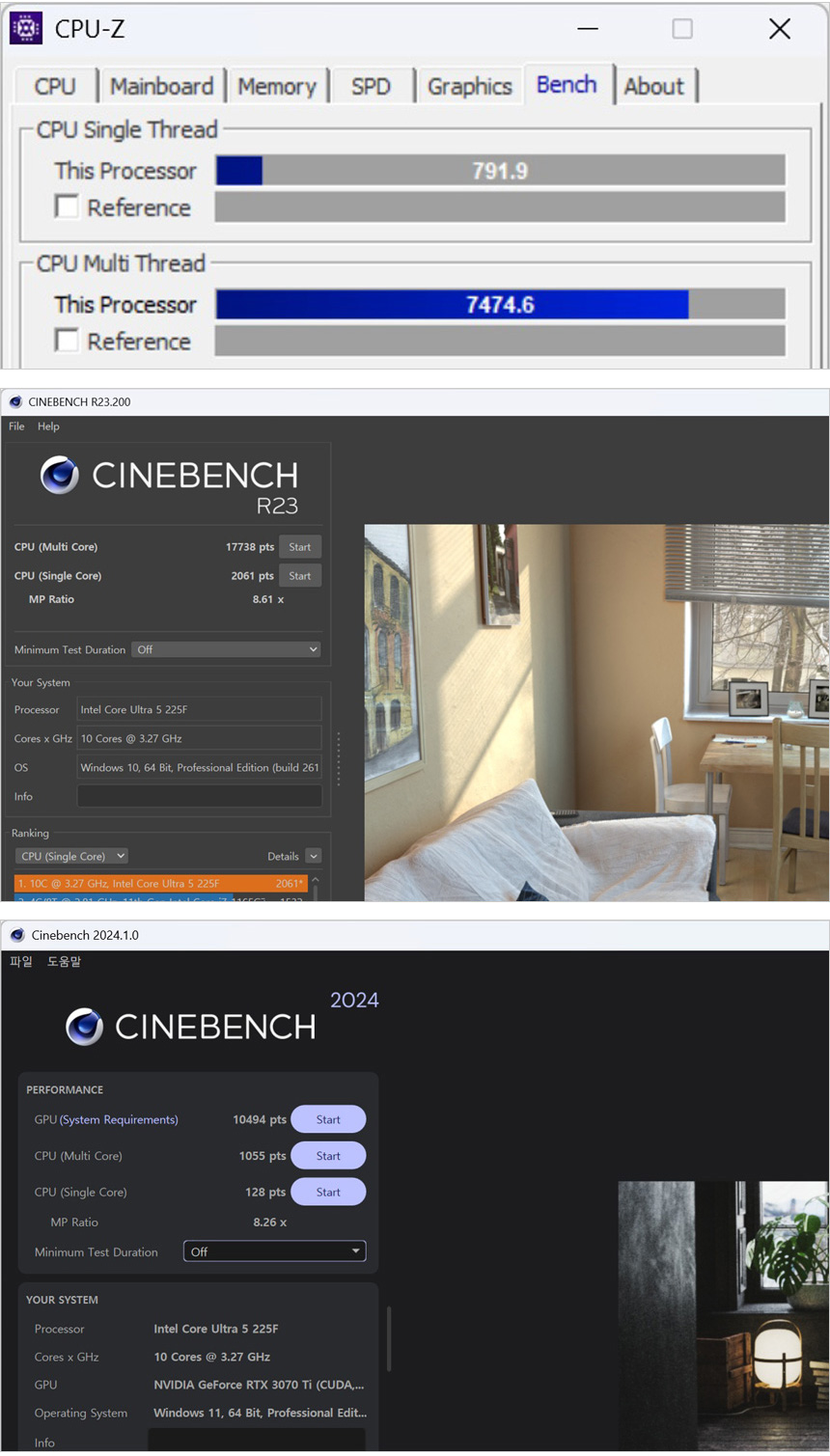 인텔코어 울트라 시리즈 200 프로세서는 하이퍼스레딩을 지원하지 않아 전작대비 성능향상이 미미할 것으로 예상했으나 벤치나 작업 테스트에서 분명한 성능차가 있는 것을 확인할 수 있었다. 물론 드라마틱한 성능향상은 아니기 때문에 12~12세대 논K 프로세서를 사용하는 유저들 보다는 11세대 이전의 CPU를 사용하는 유저들에게 업그레이드를 권하고 싶다.