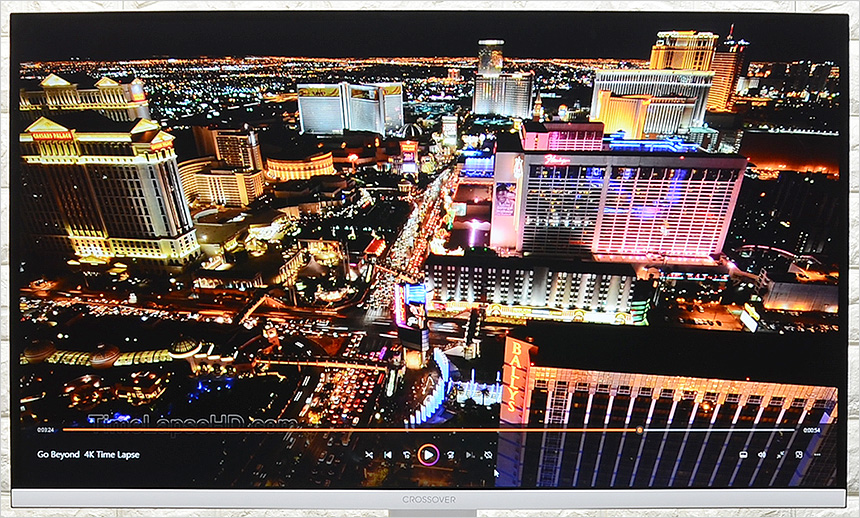 4K 동영상 파일을 재생하고 있는 모습으로 진한 컬러 표현이 인상적이었으며 스피커가 장착되어 시원시원한 사운드를 즐길 수 있었다. 고화질 동영상 감상용 으로도 유용하게 사용할 수 있는 모델이다.