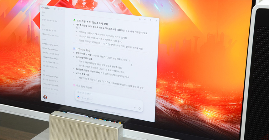 PC에 기본 설치된 코파일럿을 실행한 모습으로 빠르게 동작하는 것을 확인할 수 있었다. (업무용으로 코파일럿을 유용하게 활용하고 있다. AI에 어려움을 느낀다면 코파일럿부터 입문해 보기 바란다. 많은 도움을 받을 수 있을 것이다.) 또한 많은 유저들이 사용하고 있는 Chat GPT나 이미지 생성형 AI, 포토샵 등에서 지원하는 AI 기술등도 편하게 사용할 수 있다.