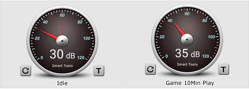 팬소음 테스트를 진행하고 있는 모습으로 CPU와 그래픽카드, 케이스에 각각 팬이 설치되어 Idle 상태에서도 미세하게 팬소음이 발생하는 것을 확인할 수 있었다. 단, 게임을 실행하면 팬소음이 확연하게 커지는 일부 게이밍PC와 달리 시끄러운 소음을 들려주지 않아 스트레스 없이 게임을 즐길 수 있었다.