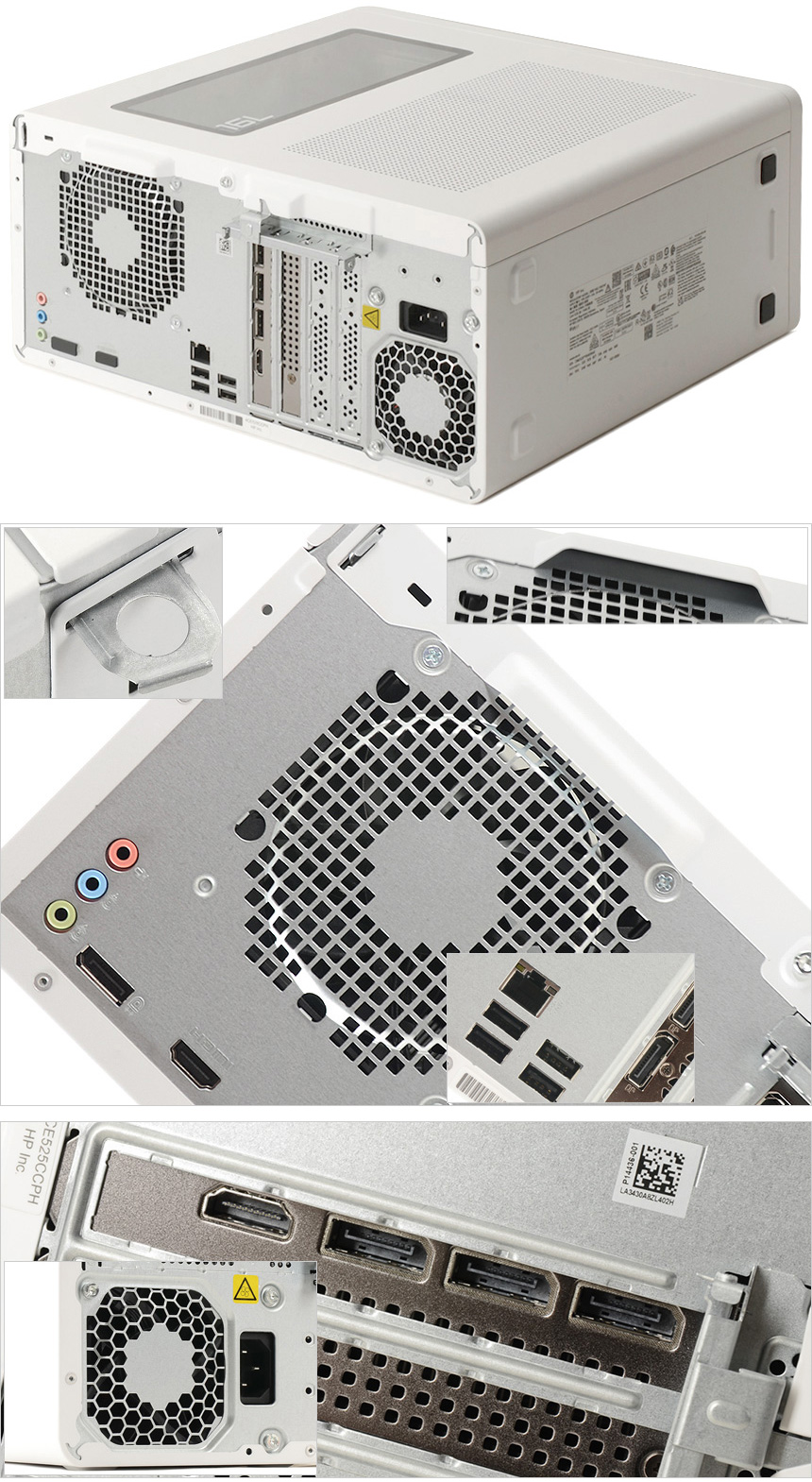 도난 방지를 위한 시큐리티 홀과 측면 패널을 쉽게 열 수 있는 손잡이, PC 개봉을 방지하기 위한 전용 홀 등이 설치된 것을 확인할 수 있으며 (공공장소 에서는 부품 교체나 도난을 방지하기 위해 자물쇠 등을 설치해야 한다.) 하단에는 파워 서플라이가 설치되어 있는 것을 알 수 있다.