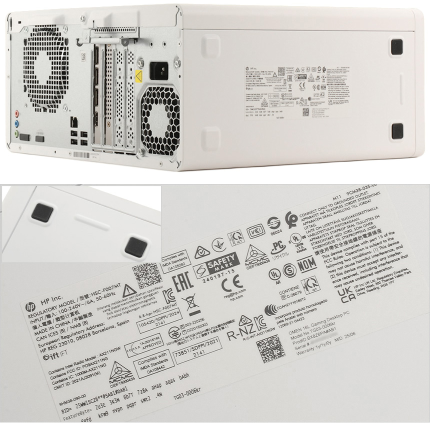 PC 바닥면의 모습으로 고무패드가 설치되어 미끄러짐을 방지한다. 또한 중앙에는 제품의 정보를 확인할 수 있는 스티커가 부착되어 있다.