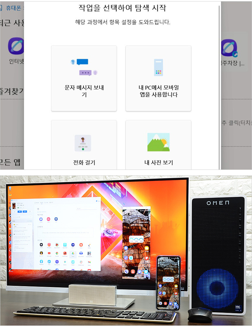 윈도우 11에서 기본 지원하는 휴대폰과 연결을 사용하면 스마트폰과 연결해 문자를 보내거나 전화 통화를 할 수 있으며 스마트폰에 설치된 앱도 사용할 수 있다. 뿐만 아니라 스마트폰 화면을 동기화 해 편하게 조작할 수 있다.