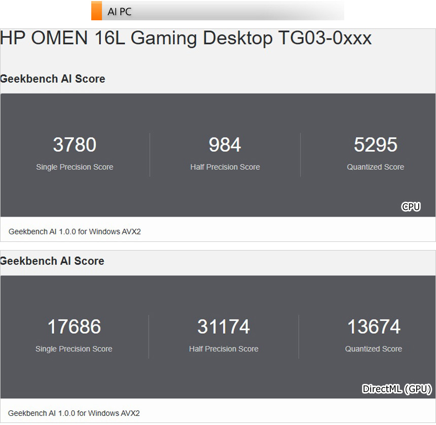 이 제품은 NPU가 탑재된 인텔의 최신 프로세서를 탑재했을 뿐만 아니라 RTX 5060 그래픽카드도 장착되어 다양한 AI 애플리케이션을 편하게 활용할 수 있다. 상단의 사진은 긱벤치 AI를 이용해 성능을 확인하고 있는 모습으로 사무용 PC나 구형PC 대비 스코어가 상당히 높은 것을 확인할 수 있었다. (RTX 4060 이 탑재된 전작과 분명한 차이를 보여주었다.)