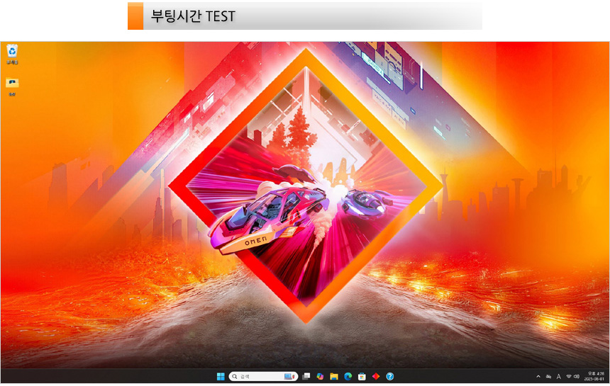 PC가 완전히 꺼진 상태에서 전원 버튼을 눌러 바탕화면이 노출될 때 까지의 시간 (콜드부팅) 을 측정했는데 22초가 소요되는 것을 확인할 수 있었다. (바이오스 로딩 시간이 살짝 긴편이다.)