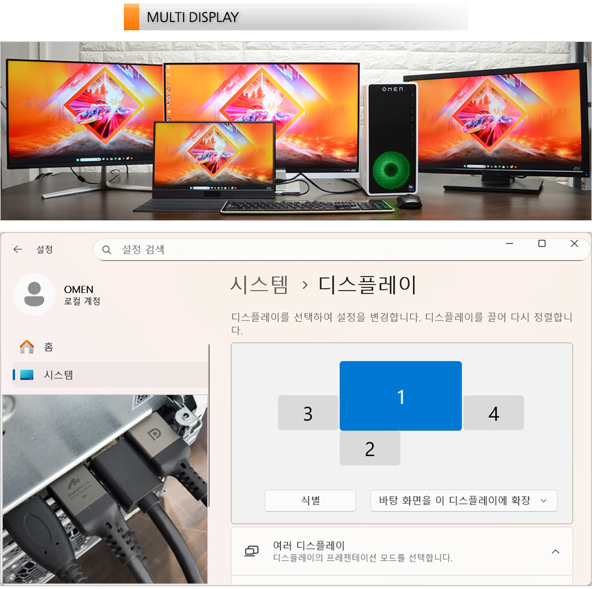 RTX 5060 그래픽카드는 최대 4개의 모니터 연결이 가능하다. 상단의 사진은 연결 테스트를 진행하고 있는 모습으로 4K 모니터를 비롯해 모든 모니터가 원할하게 작동하는 것을 확인할 수 있었다. 다양한 창을 띄어두고 업무를 보는 유저들이나 학생들이 유용하게 활용할 수 있을 것이다.