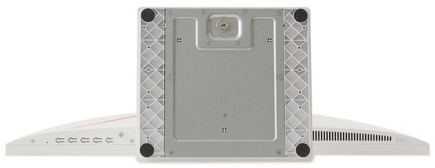 모니터 후면부의 모습으로 깔끔하게 구성된 것을 확인할 수 있다. 하단에는 도난 방지를 위한 시큐리티 홀이 설치되어 있으며 디자인 부분에서 언급한 것과 같이 레드라인을 적용해 포인트를 주었다.