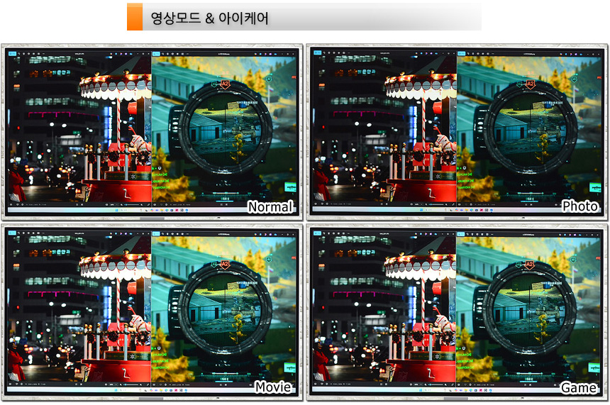 다양한 화면 모드를 제공해 편의성을 높였다. (최고급형 모델답게 다양한 설정을 지원한다.) 일일이 밝기와 명암등을 조정하지 않고 컨텐츠나 게임에 맞는 화질을 선택할 수 있다.