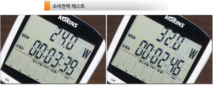 소비전력 테스트를 진행하고 있는 모습으로 100% 밝기에서는 32W, 50% 밝기에서는 24W의 소비전력을 보여주었다. 4K 고해상도 모니터지만 소비전력이 높지 않아 전기세 걱정없이 사용할 수 있을 것이다.