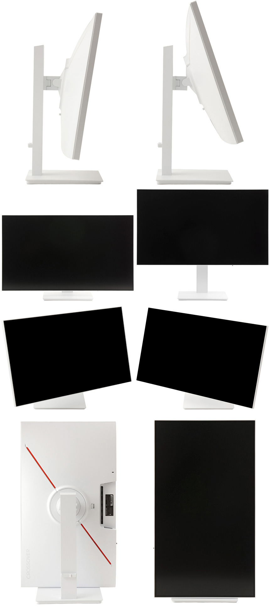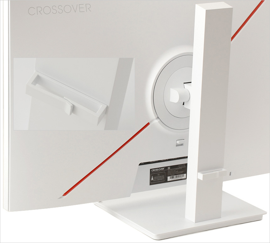 모니터의 디자인은 구형 모델들과 확연히 다른 것을 확인할 수 있다. 블랙 일색의 일반 모니터들과 달리 화사한 화이트 컬러를 적용해 최근 유행하는 화이트 PC케이스와 잘 어울리며 후면에 레드컬러의 사선을 적용해 포인트를 주었다. 마감 완성도 또한 상당히 뛰어난 제품으로 모니터 구입시 디자인을 중요하게 생각한다면 좋은 선택이 될 것이다.