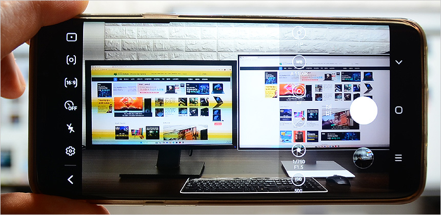 모니터 깜빡임으로 인한 눈의 피로를 최소화 하기 위해 플리커 프리 기술을 지원한다. 상단의 사진은 테스트를 위해 일반 모니터를 추가로 셋팅한 모습으로 큰 차이가 없는 것을 확인할 수 있다.