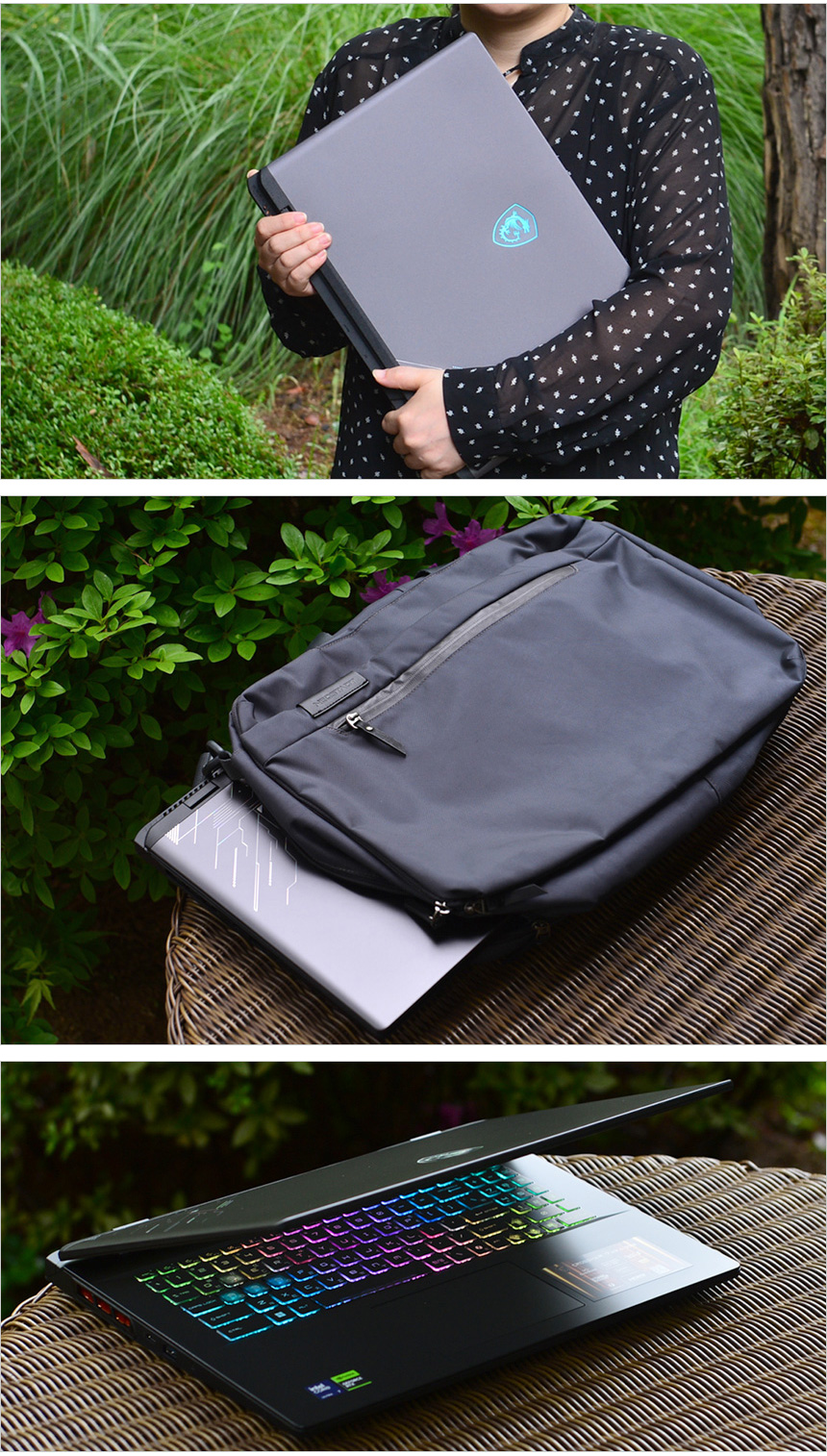 퍼포먼스에 특화된 17형 대화면 노트북으로 크기도 크고 두께도 상당한 것을 확인할 수 있다. 이런 이유로 항상 들고다녀야 하는 유저들에게는 적합하지 않다. 단, 전용 가방을 제공하며 대용량 배터리, PD충전 지원으로 들고 다니며 외부에서 사용하는데 큰 불편은 느껴지지 않았다. (필자는 촬영 때문에 며칠 가지고 다녔는데 부담스럽다는 느낌은 없었다.)