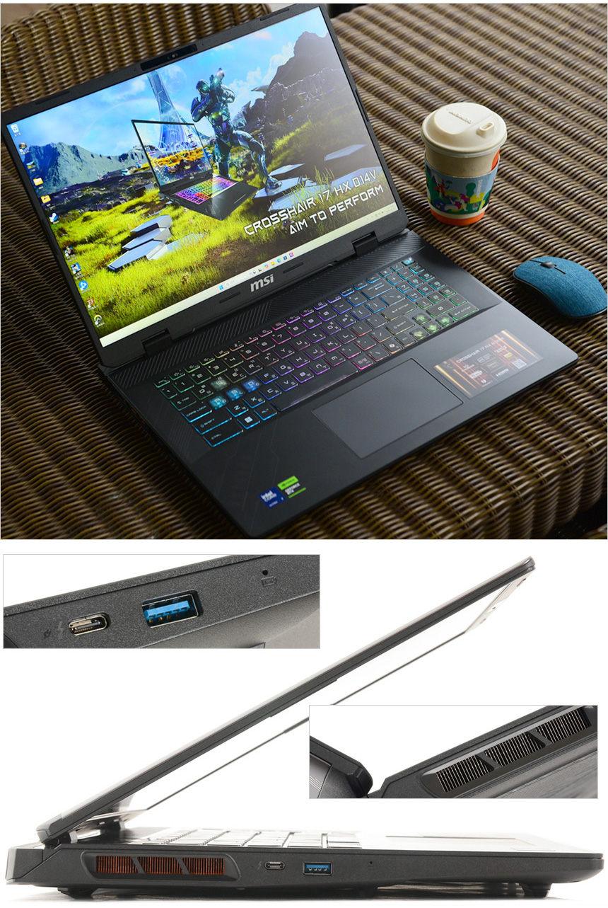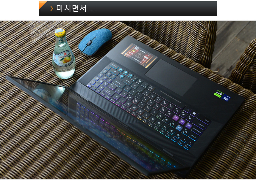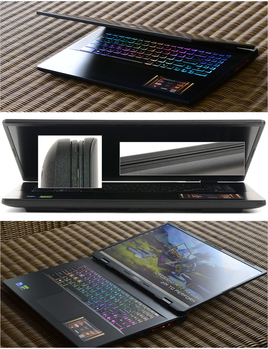 고급형 게이밍 노트북 답게 400nits 의 높은 밝기를 지원하는 17형 대화면 IPS 타입 디스플레이를 탑재했으며 240Hz 의 높은 주사율 지원으로 보급형 모델들을 압도하는 부드러운 영상을 즐길 수 있다. 또한 24 Zone RGB 게이밍 키보드를 장착해 아름다운 조명 효과를 즐길 수 있으며 90Wh 대용량 배터리에 PD충전까지 지원해 편의성을 한층 높였다.
