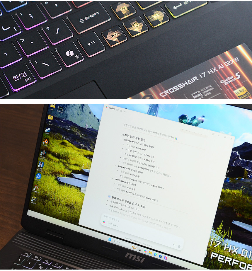 2025년 새롭게 출시된 MSI 크로스헤어 17 HX AI 시리즈는 인텔코어 울트라 7 255HX와 RTX 5060 이 탑재된 D2XWFKG-U7 뿐만 아니라 인텔코어 울트라 9 275HX와 RTX 5070 이 탑재된 D2XWGKG-U9 모델도 판매되고 있어 성능이나 가격등을 고려해 제품을 선택할 수 있다. 특히 유통사에서 32GB 메모리, 최대 4TB SSD, 윈도우 11 탑재 모델도 판매하고 있어 사용자에 맞는 모델을 편하게 구입할 수 있다.