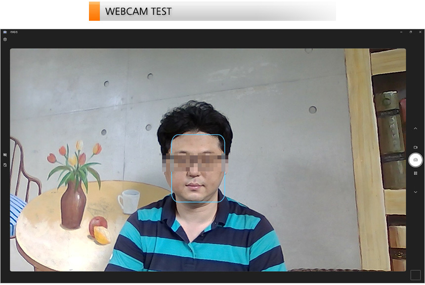 HD 웹캠의 화질을 확인하고 있는 모습으로 디테일이나 화질은 FHD 웹캠과 비교해 떨어지지만 화상회의나 사진 및 동영상 촬영등은 충분히 가능한 수준의 영상을 보여주었다.
