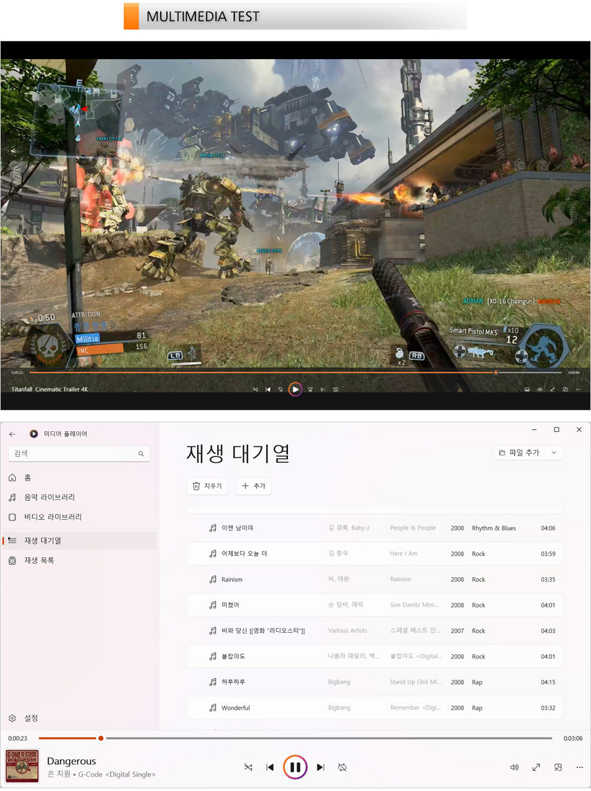 4K 동영상을 이용해 멀티미디어 테스트를 진행하고 있는 모습으로 IPS 타입 패널에 QHD+ 해상도 지원으로 일반 노트북과는 확연히 다른 디테일과 선명함을 보여 주었으며 17형 대화면에 슬림 베젤 탑재로 높은 몰입감을 경험할 수 있었다. 또한 MP3 파일을 이용해 스피커의 사운드를 확인해 보았는데 2W 스테레오 스피커를 탑재해 사무실을 울리는 풍성한 사운드를 들을 수 있었으며 나히믹에서 다양한 설정을 지원해 입체음향을 최소화 하고 음악을 감상하는 용도로도 셋팅할 수 있었다. (음악 감상시 나히믹의 가상 서라운드는 비활성화 하기 바란다.)