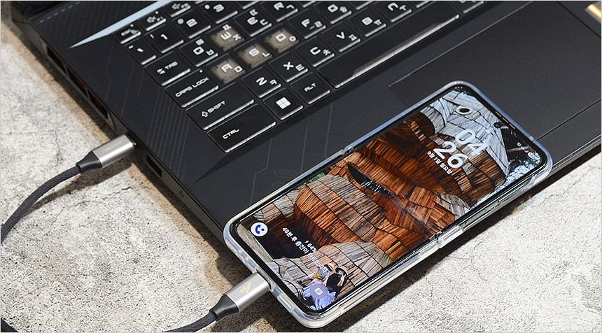 썬더볼트 4 단자는 상시전원을 지원해 노트북이 꺼진 상태에서도 스마트폰 충전이 가능하다. (단, 노트북 전원은 연결되어 있어야 한다.)