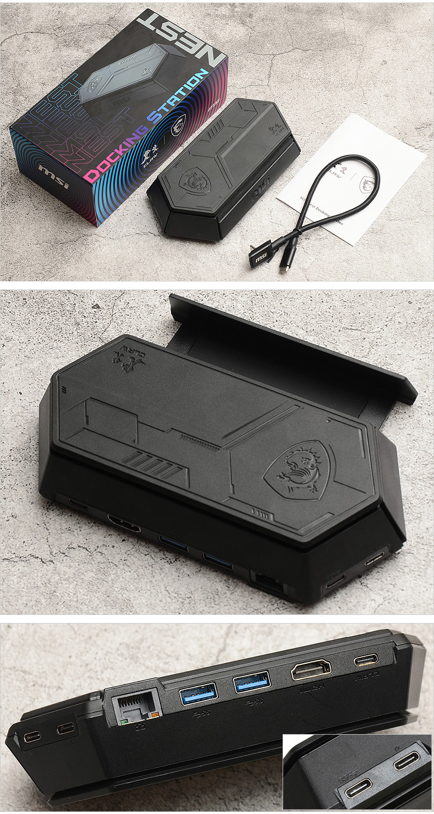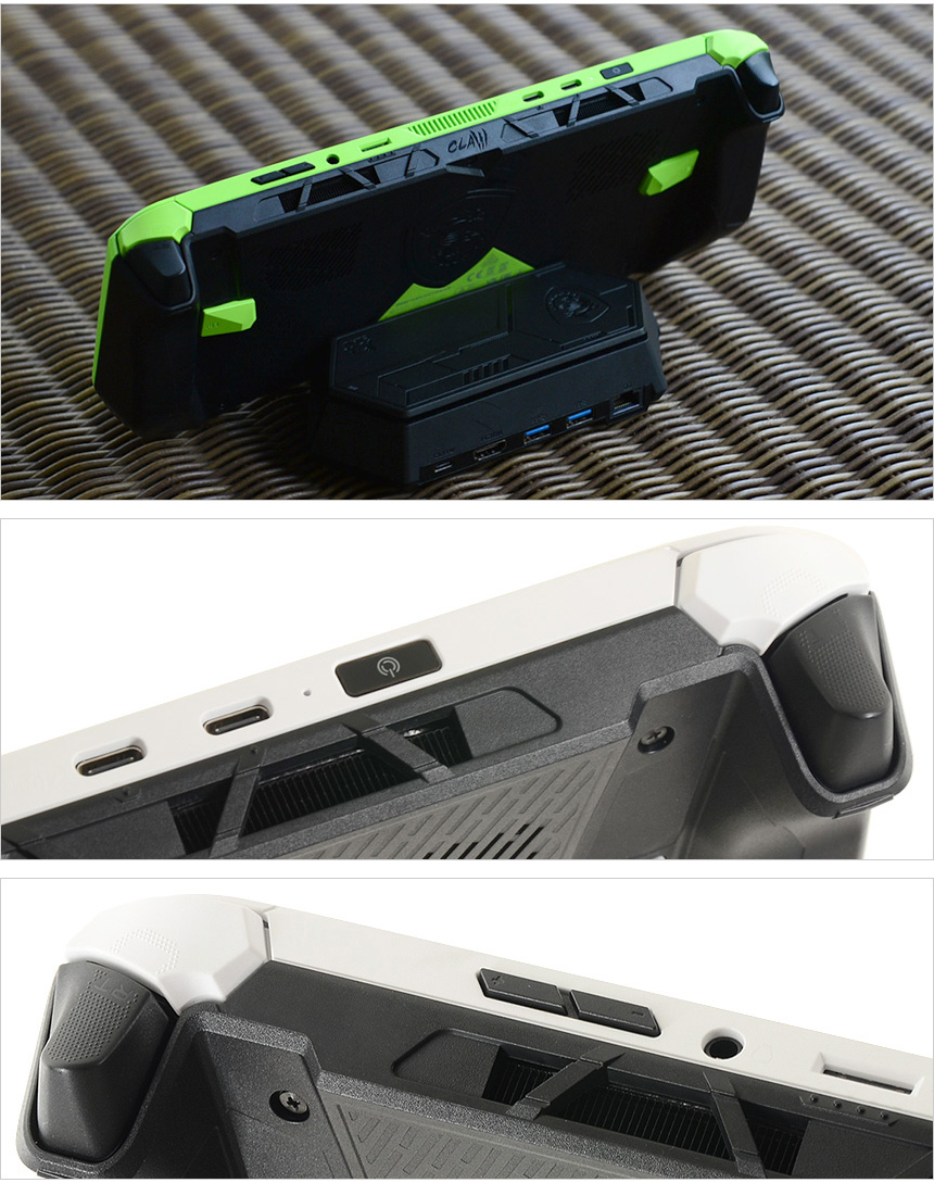 별도로 판매되는 도킹 스테이션의 모습으로 기본적으로 스탠드 기능을 제공하며 다양한 단자를 지원해 집이나 사무실 등에서 PC용도로 활용할 때 특히 유용하게 활용할 수 있다. (연결을 위한 케이블이 별도로 제공되어 클로 뿐만 아니라 시중에서 판매되는 게이밍 UMPC 대부분과 호환된다.)
