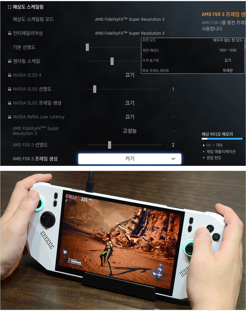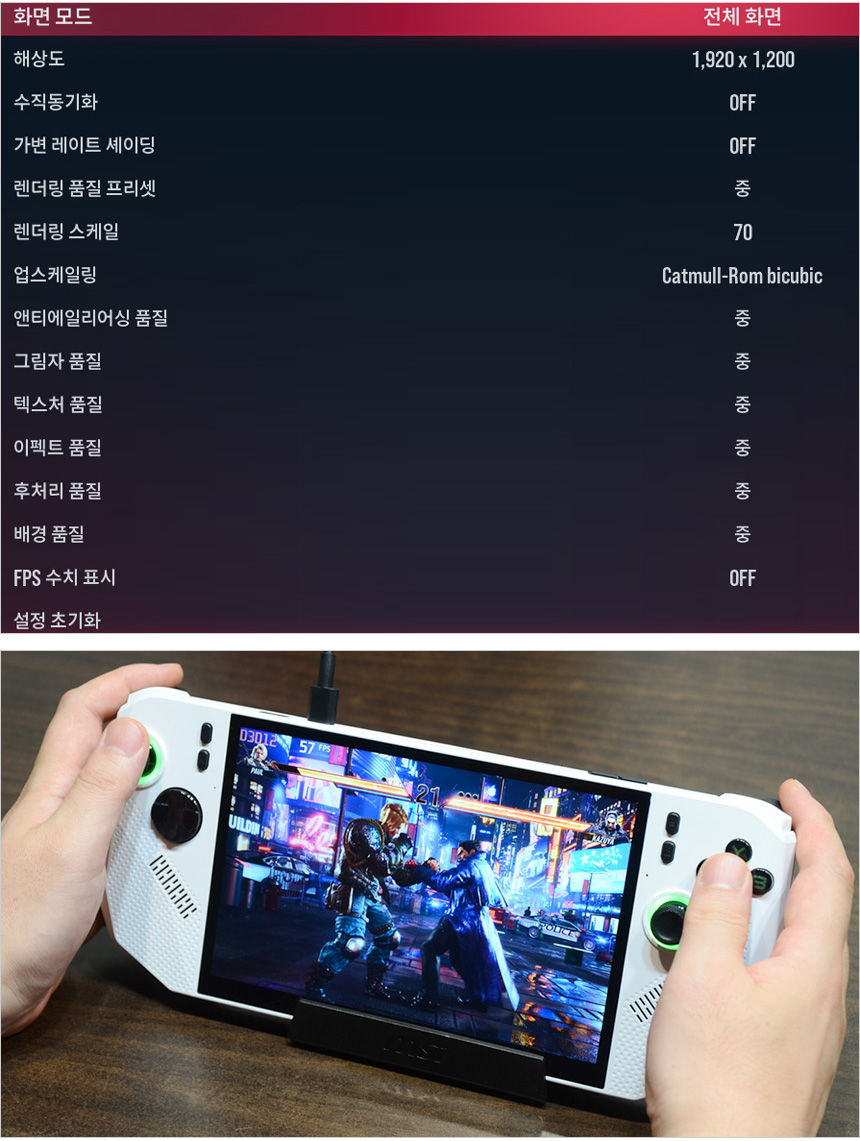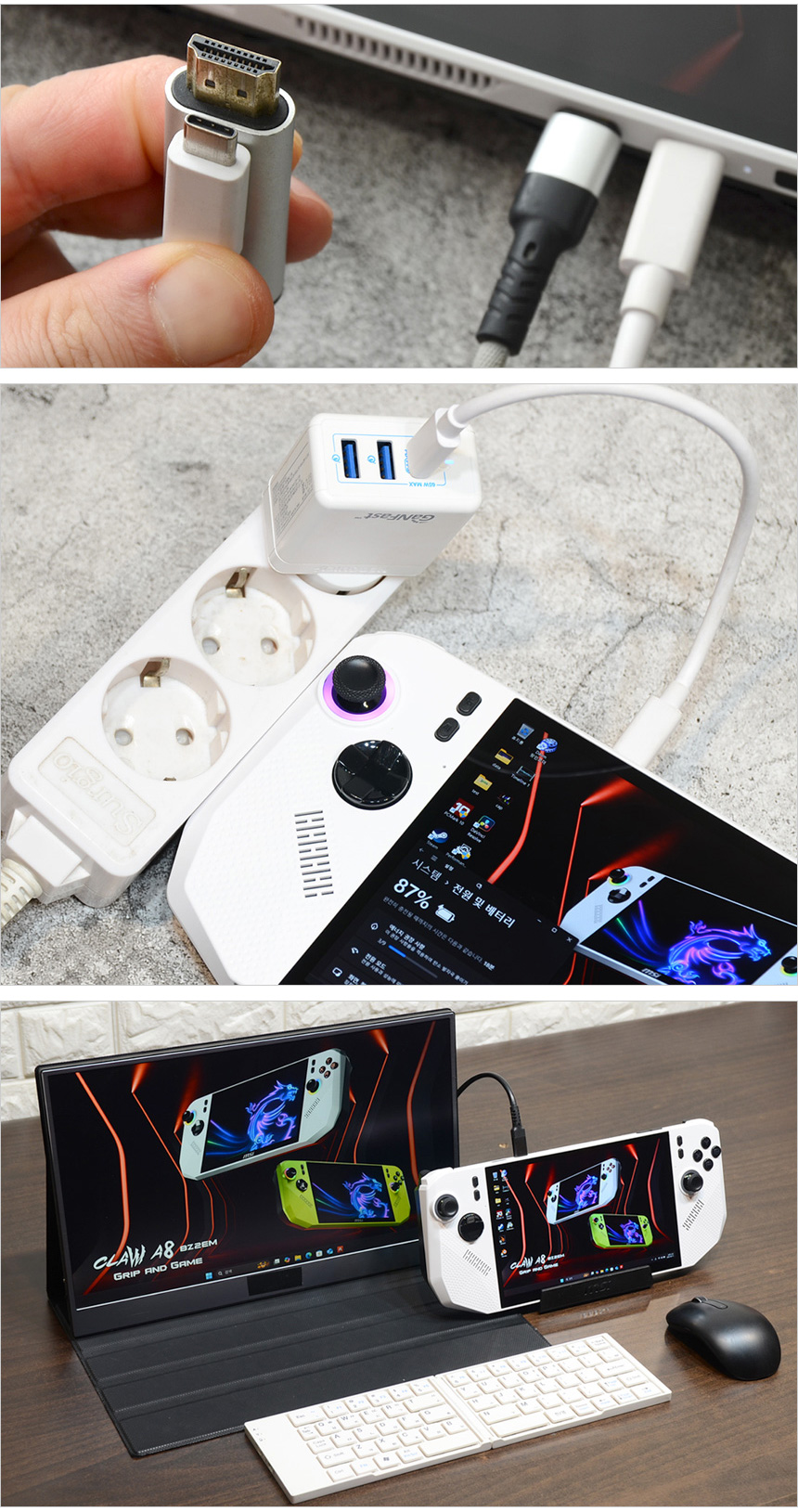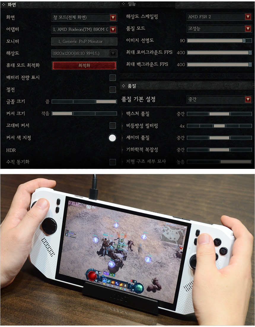 긴 배터리 사용시간도 인상적이었다. Ai 모드로 설정해도 2시간 30분 이상 쾌적하게 게임을 플레이 할 수 있고 인듀어런스 모드를 사용하면 3시간 이상 여유롭게 게임을 즐길 수 있다. PD충전을 기본 지원하고 충전속도도 상당히 빨라 외부에서 전원걱정 없이 게임을 즐길 수 있을 것이다.
