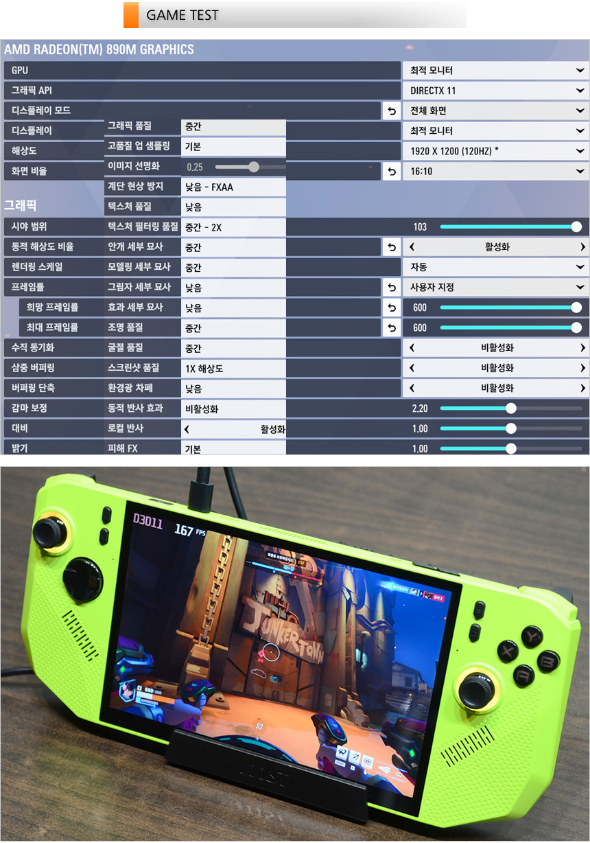 특히 싸이버펑크나 검은신화 오공과 같이 높은 성능을 필요로 하는 게임에서 뛰어난 성능을 보여준 것이 인상적이었다. (오버워치 2나 디아블로 4와 같은 일부 게임의 경우 루나레이크 탑재 모델의 성능이 더 뛰어났다.) 현재 판매되는 게이밍 UMPC중 성능만 보고 제품을 구입하고 싶다면 이 제품은 좋은 대안이 될 것이다.