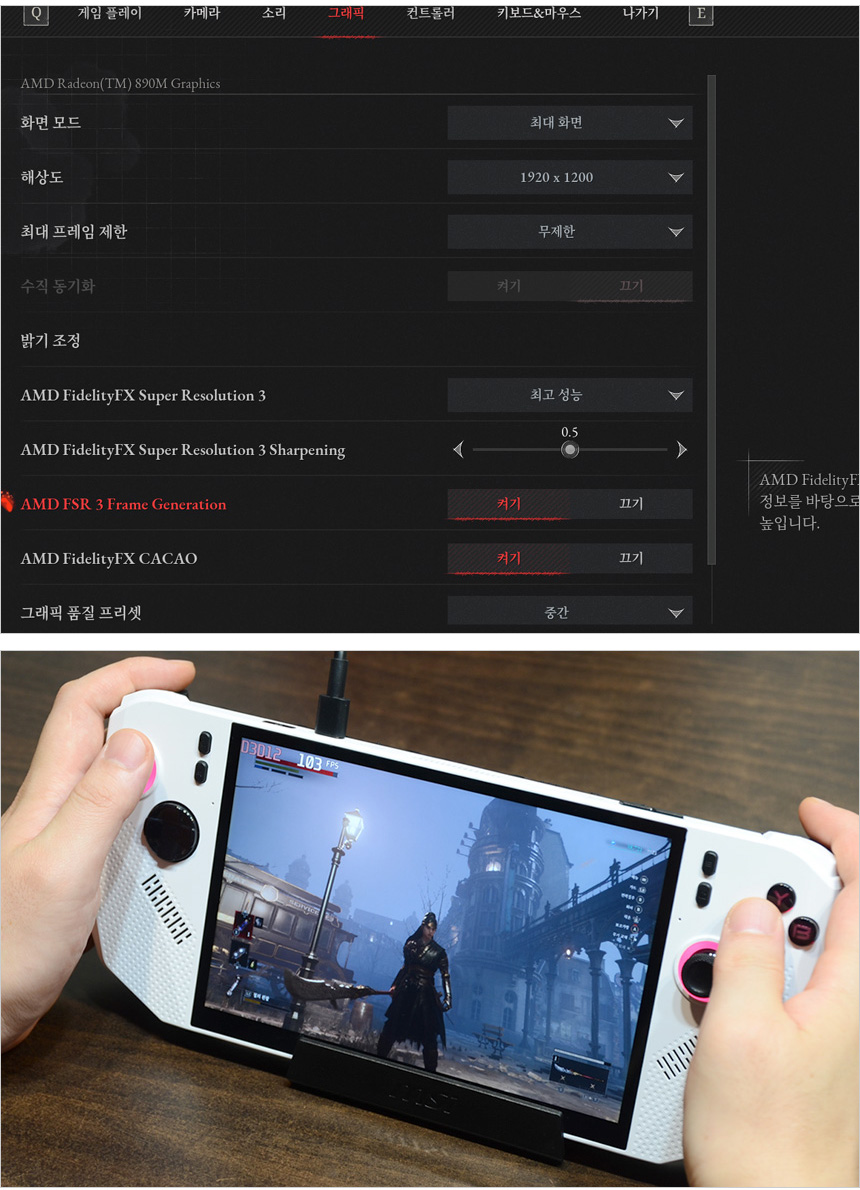 게임 테스트를 진행해 보도록 하자. 모든 게임은 FHD+ 해상도로 진행했으며 중간 옵션으로 설정후 테스트를 진행했다. 또한 최고성능으로 작동하는 수동 모드를 선택했으며 FSR 업스케일링 기술은 지원 게임에 한해 적용했다. (모든 게임은 동영상으로 촬영되었다. 자세한 사항은 동영상을 확인하기 바란다.)