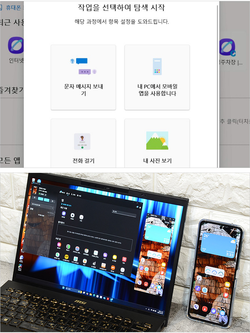 윈도우 11에서 기본 지원하는 휴대폰과 연결을 사용하면 스마트폰과 연결해 문자를 보내거나 전화 통화를 할 수 있으며 스마트폰에 설치된 앱도 사용할 수 있다. 뿐만 아니라 스마트폰 화면을 동기화 해 편하게 조작할 수 있다. (스마트폰을 업무용으로 활용하고 있다면 적극적으로 활용하기 바란다.)