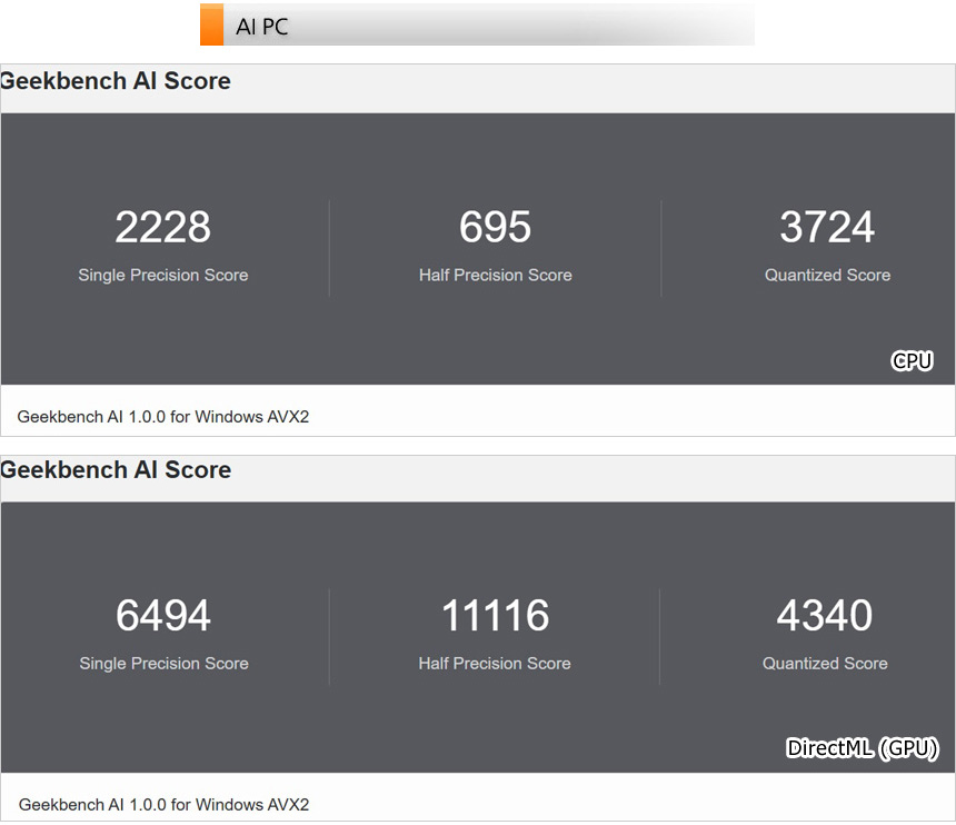 AI 전용 벤치마크 툴을 이용해 AI 성능 테스트를 진행하고 있는 모습으로 NPU가 탑재된 최상급 CPU 탑재 모델답게 스코어가 상당히 높은 것을 확인할 수 있다.