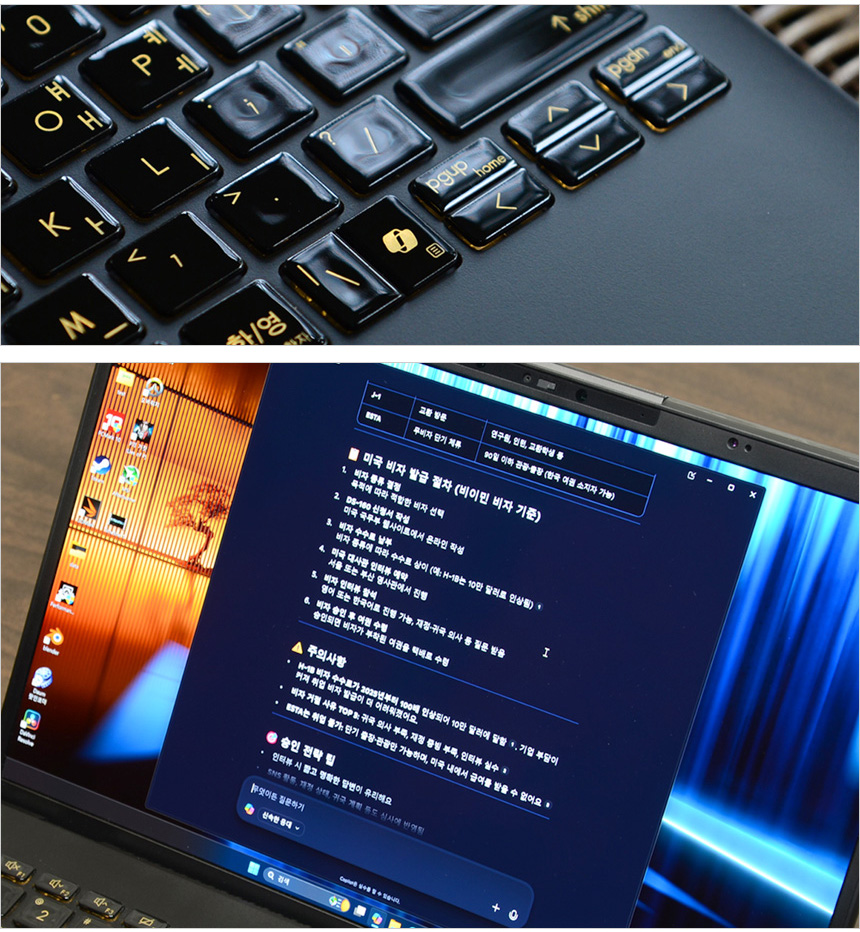 전문가용 S/W 는 물론 AI 용으로도 유용하게 활용할 수 있다. 특히 MS 코파일럿 전용키를 지원해 편하게 사용할 수 있다. (일반 노트북과 달리 높은 성능을 필요로 하는 AI 프로그램도 부드럽게 사용할 수 있다.) @ 업무에서 많은 도움을 받고 있다. AI 가 막연하게 느껴진다면 가장 먼저 코파일럿을 활용해 보기 바란다. 업무나 학습에서 많은 도움을 받을 수 있을 것이다.