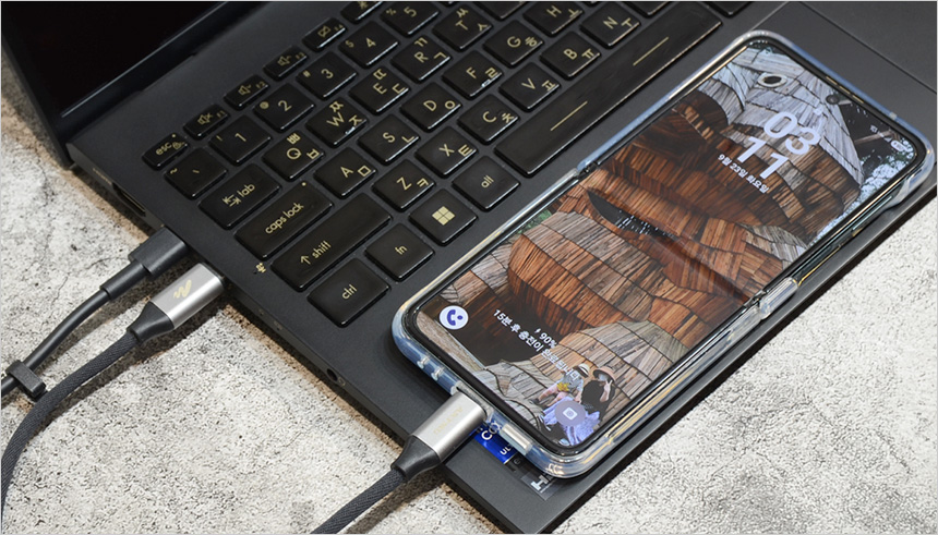 썬더볼트 4 단자는 상시전원을 지원해 (단, 노트북 전원이 연결되어 있어야 한다.) 노트북이 꺼진 상태에서도 스마트폰 충전이 가능하다. (MSI 센터 S에서 기능을 설정해야 사용할 수 있다.)