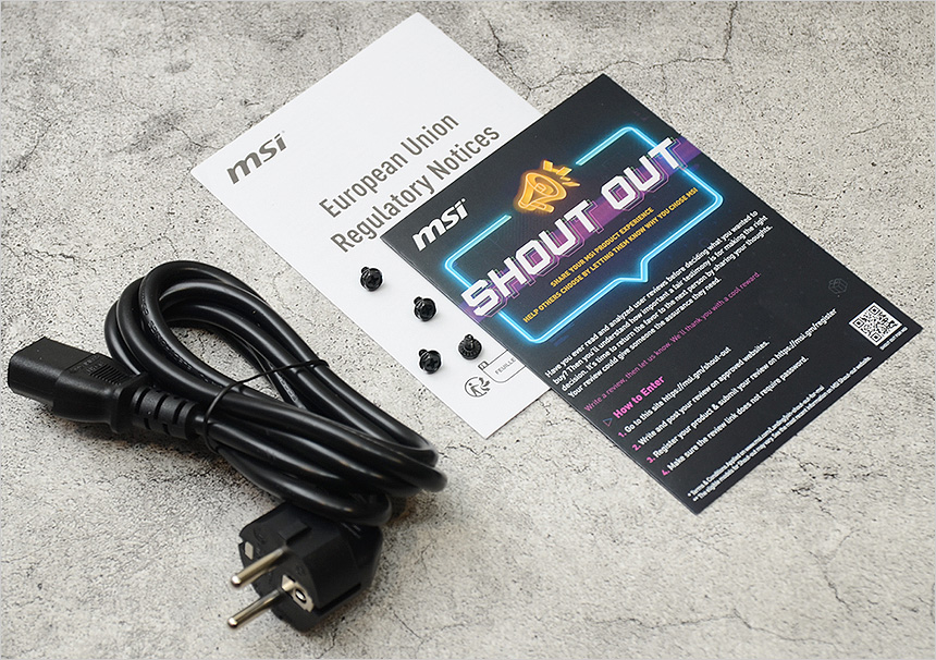 전원 케이블과 조립을 위한 4개의 볼트가 제공되는 것을 확인할 수 있다.