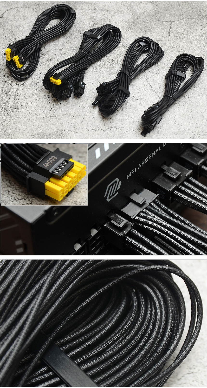 참고로 이 제품은 12VHPWR 커넥터의 안정성 이슈를 불식시키기 위해 12V2x6 커넥터를 사용했으며 케이블 단자부를 듀얼컬러로 구성해 결착 여부를 눈으로 쉽게 확인할 수 있다. (노란색이 보이지 않도록 힘을주어 장착해야 한다.) 또한 부드러운 브레이디드 모듈러 케이블을 사용해 PC 조립 편의성을 높였으며 케이블에는 오거나이저가 장착되어 케이블 타이등을 사용하지 않아도 가지런히 정리할 수 있다.