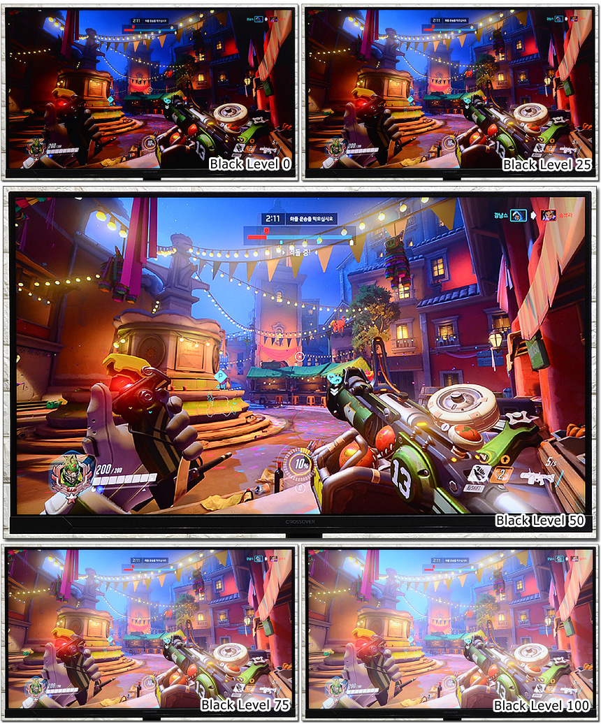 적절한 블랙레벌 조정을 통해 게임에서 시인성을 높일 수 있다. 밝아지는 만큼 색감이 떨어지기 때문에 선명도와 시인성을 전반적으로 고려해 설정하기 바란다.