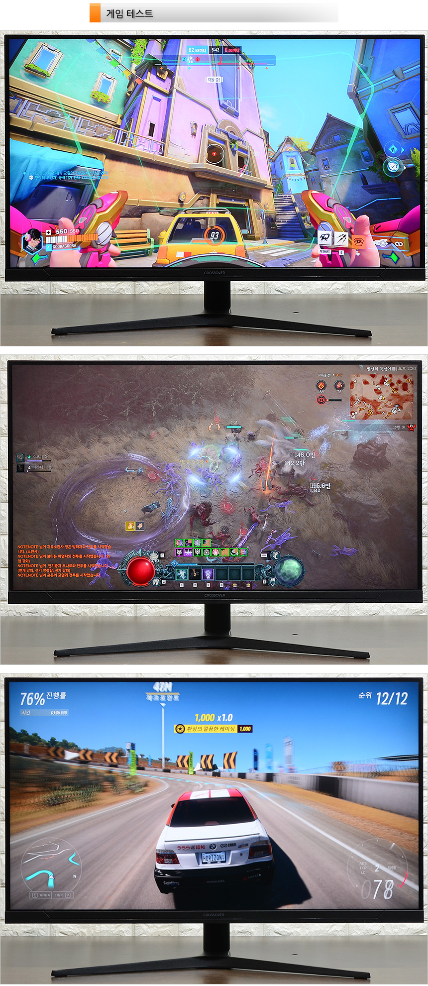 게임에 특화된 모델은 아니지만 다양한 게임화면 모드를 제공하고 조준선과 프리싱크 등의 기술을 지원해 가끔씩 게임을 즐기는 필자와 같은 유저들이 유용하게 사용할 수 있으며 블루라이트 감소와 플리커 프리등의 아이케어 기술이 적용되어 장시간 편하게 사용할 수 있는점도 장점이라 할 수 있다.