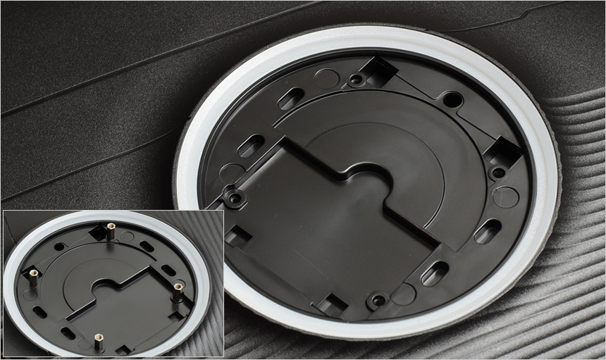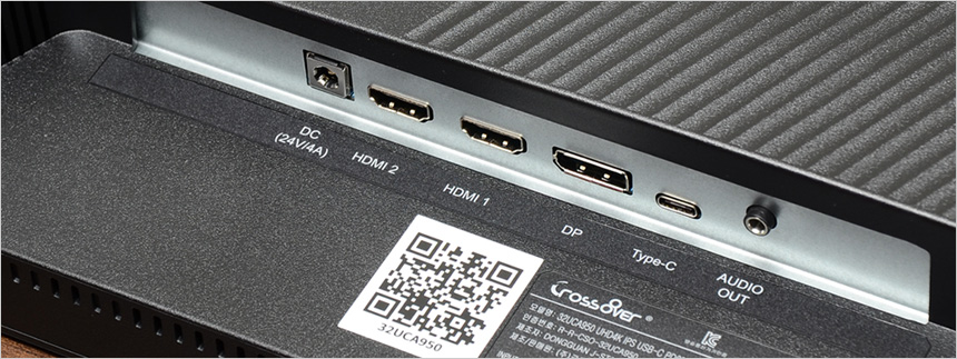 후면 중앙에는 75mm 베사홀이 설치되어 벽에 걸거나 ARM 등에 장착해 사용할 수 있으며 (툴리스 방식의 받침대를 지원해 손쉽게 탈착할 수 있다.) 베사 연장볼트를 제공해 설치 편의성을 높였다. 또한 하단 중앙에는 DP 1.4 단자와 두 개의 HDMI 2.0 단자를 지원해 PC는 물론 게임콘솔이나 IPTV, OTT 플레이어 등을 손쉽게 연결할 수 있으며 스마트폰이나 노트북 연결을 위한 C타입 단자도 제공된다. (PD충전 지원으로 연결과 동시에 디바이스가 충전된다.)