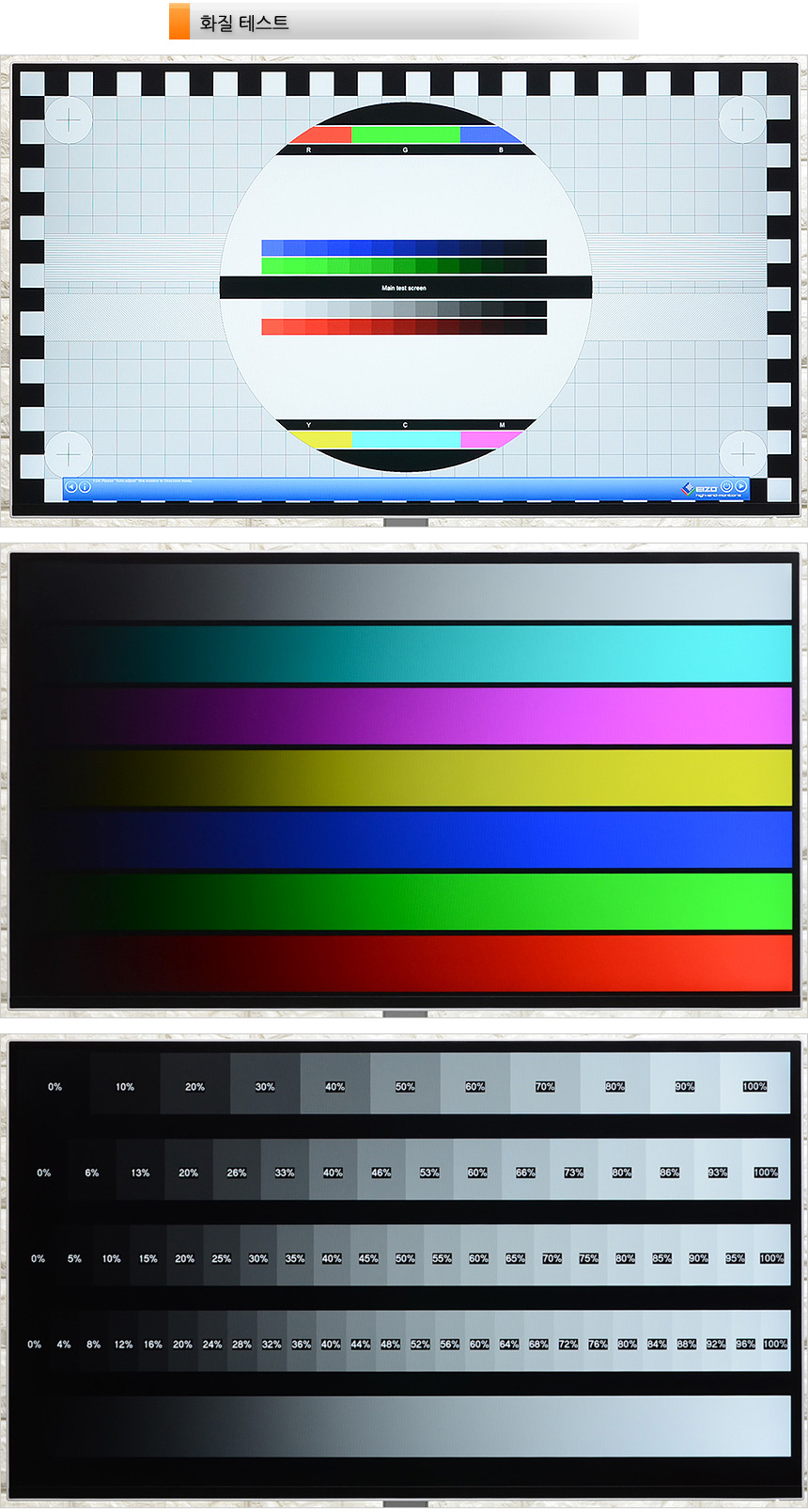 테스트 프로그램을 이용해 모니터 화질을 확인하고 있는 모습으로 QHD 고해상도 IPS 패널을 사용한 제품답게 일반 모니터와는 확연히 비교되는 디테일과 진한 색감을 보여주었다. 보급형 IPS 모니터와는 눈으로 보기에도 분명한 차이를 보이는 제품으로 진한 원색을 선호한다면 만족하며 사용할 수 있을 것이다.