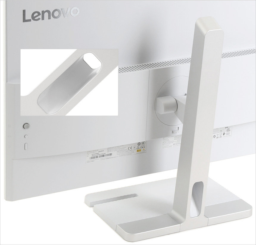 모니터의 디자인은 고급형 모델답게 상당히 세련된 것을 확인할 수 있다. 블랙컬러 일색의 일반 모니터들과 달리 많은 레노버 제품들에 적용되고 있는 클라우드 그레이 컬러를 적용해 밝고 화사한 느낌을 선사하며 가격에 걸맞는 높은 마감 완성도로 고급스러운 느낌을 자아낸다. 또한 전면부를 심플하게 구성해 작업시 시선이 분산되지 않았다.