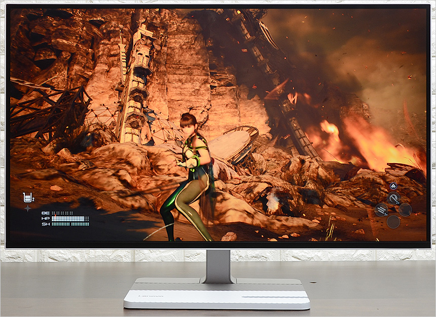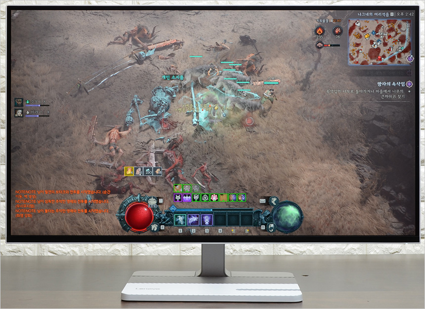 스텔라 블레이드와 디아블로 4를 플레이 하고 있는 모습으로 350cd/㎡ 의 높은 밝기를 지원해 배경 자체가 어두웠음에도 명확하게 캐릭터와 배경을 구분할 수 있었으며 IPS 패널 특유의 진한 컬러가 무척 마음에 들었다. 또한 슬림 베젤이 적용되어 시원시원한 영상을 선사한 점도 칭찬하고 싶다.