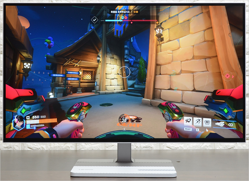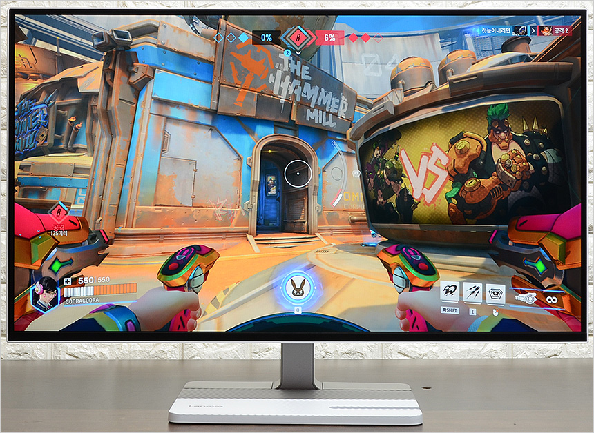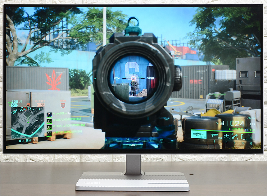 오버워치 2와 배틀필드 2042를 이용해 게임 테스트를 진행하고 있는 모습으로 빠른 움직임시 끊어지거나 늘어지는 느낌을 주는 60Hz 주사율의 일반 모니터와 달리 100Hz 주사율과 1ms 응답속도를 지원해 훨씬 부드럽고 깔끔한 게임 영상을 보여주었다. 144Hz 이상의 게이밍 모니터와 차이가 있긴 하지만 일반 모니터와 비교하면 매리트가 충분한 모델로 FPS 등의 게임을 즐기는 유저들이 유용하게 사용할 수 있을 것이다.