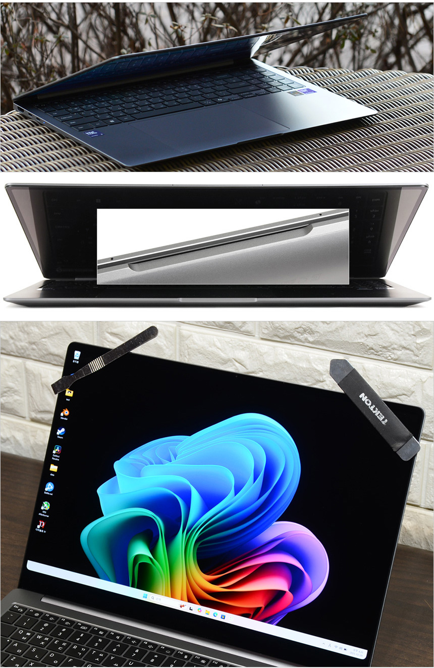 다이나믹 AMOLED 2X 디스플레이를 탑재한 노트북으로 시야각 없는 선명한 영상을 즐길 수 있다. 상단의 사진은 시야각 테스트를 진행하고 있는 모습으로 극단적인 각도에서도 시야각으로 인한 불편은 느껴지지 않았다.