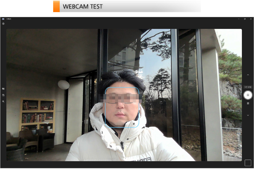 웹캠의 화질을 확인하고 있는 모습으로 2MP 해상도를 지원해 보급형 노트북을 압도하는 화질과 디테일을 보여주었다. 화상회의가 많은 직장인과 대학생이 유용하게 활용할 수 있을 것이다. (참고로 스태거드 HDR 지원으로 선명하고 생생한 화상회의 화질을 제공한다.)