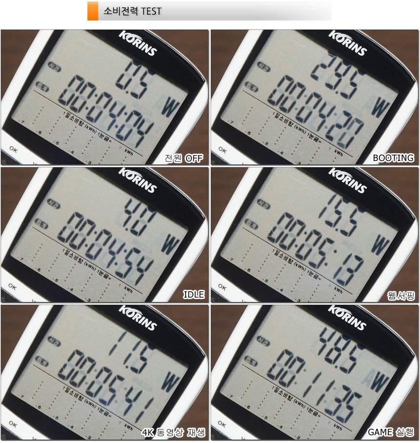 소비전력 테스트를 진행하고 있는 모습으로 (밝기 50%, 최고성능 모드) 루나레이크를 탑재한 모델답게 캐주얼한 작업에서는 20W 미만의 낮은 소비전력으로 작동했으며 높은 성능을 필요로 하는 게임에서는 40W 후반대의 소비전력을 보여주었다. @ 저전력으로 셋팅했거나 스로틀링 때문에 소비전력이 낮아지는 것이 아니다. 루나레이크의 전력 효율성이 뛰어난 것을 보여주는 것이다.