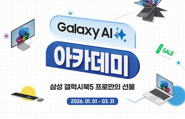 유니씨앤씨는 강력한 Galaxy AI 기능을 탑재한 갤럭시북5 프로시리즈를 대상으로 갤럭시 AI 아카데미 프로모션을 2026년 1월 1일부터 3월 31일까지 실시한다.