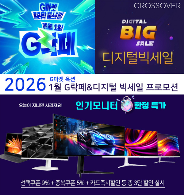 크로스오버는 자사의 인기 게이밍 고해상도 모니터들을 대상으로 ‘G마켓 옥션 1월 G락페 & 디지털 빅세일 프로모션’을 펼친다.