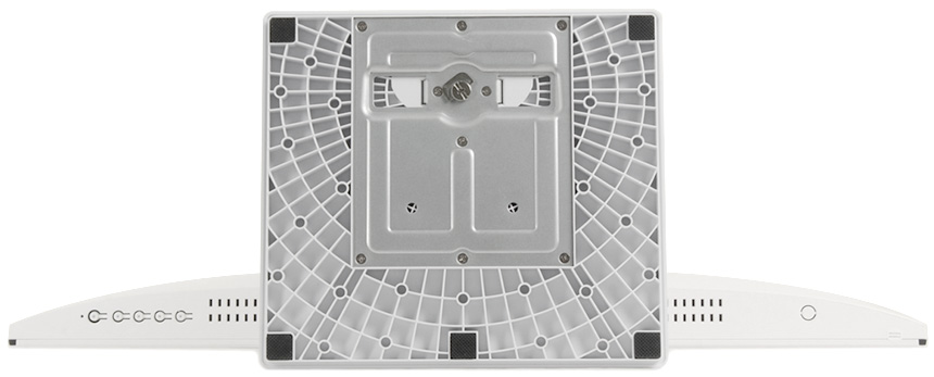 중앙에는 100mm 베사홀이 설치되어 벽에 걸거나 ARM 등에 장착해 사용할 수 있으며 (툴리스 방식으로 스탠드를 손쉽게 탈부착 할 수 있으며 베사 연장볼트 지원으로 장착 편의성을 높였다.) 하단 중앙에는 2개의 HDMI 와 DP 단자 및 오디오 OUT 단자가 제공되어 다양한 디바이스와 연결해 활용할 수 있다. 또한 2개의 3W 스피커가 장착되어 게임이나 동영상 감상시 HDMI 나 DP 연결만으로 사운드를 즐길 수 있다.