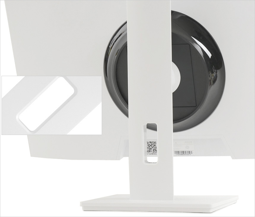 깔끔한 디자인이 돋보이는 모니터 후면부의 모습으로 상단에 통풍구가 설치된 것을 확인할 수 있다.