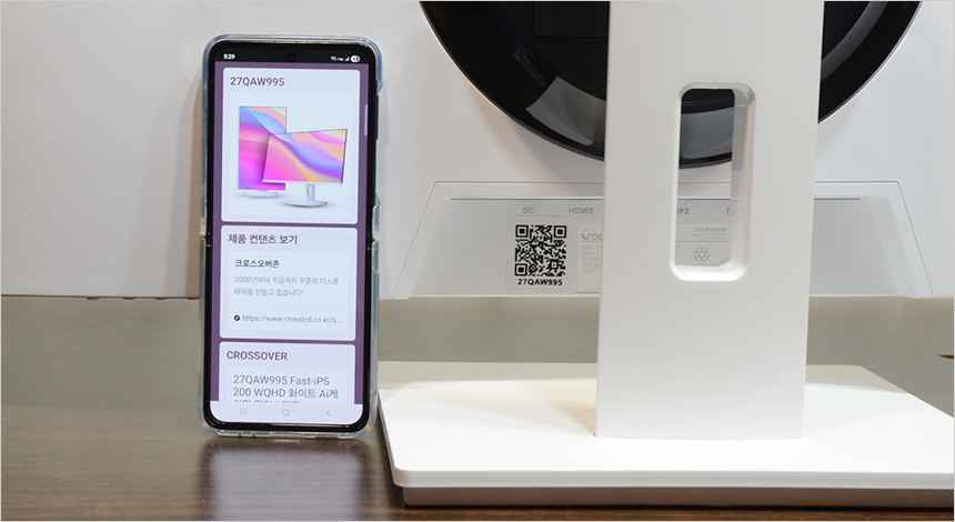 모니터 후면에 부착된 QR코드를 스마트폰 으로 스캔하면 모니터 제조일과 모니터 관련정보를 확인할 수 있다.