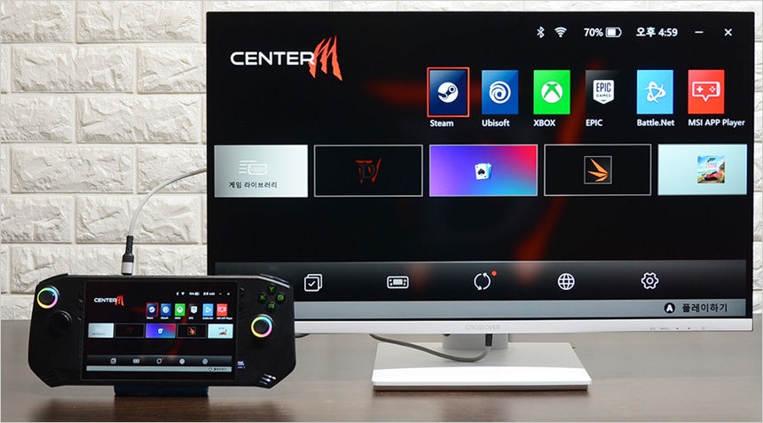 HDMI 단자를 지원해 대부분의 노트북과 편하게 연결할 수 있으며 플레이 스테이션 등의 게임콘솔과 연결해 게임을 플레이 할 수 있다. 뿐만 아니라 최근 많은 유저들이 사용하고 있는 게이밍 UMPC 등과 연결해 대화면으로 게임이나 영상을 즐길 수 있다. (참고로 모니터와 게이밍 UMPC는 HDMI to C타입 케이블로 연결했다.)
