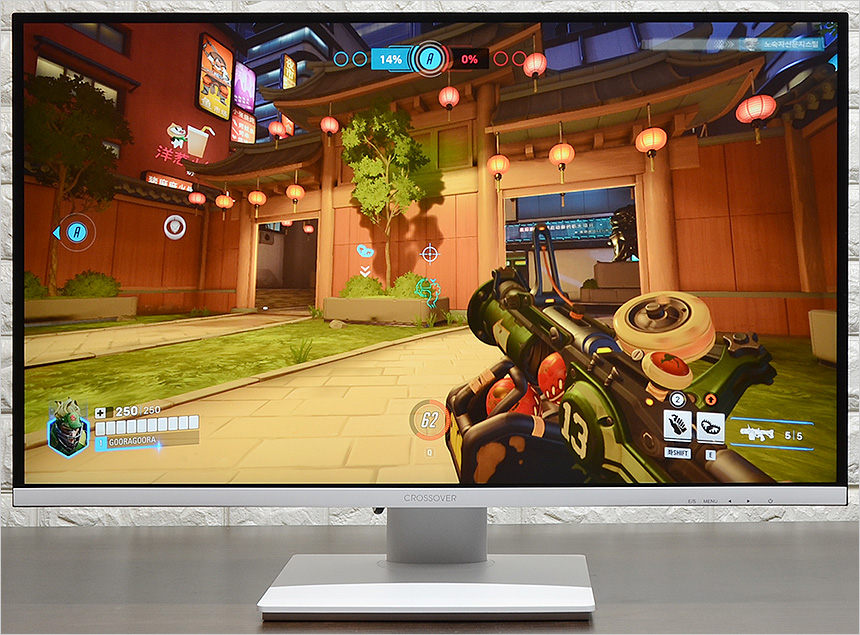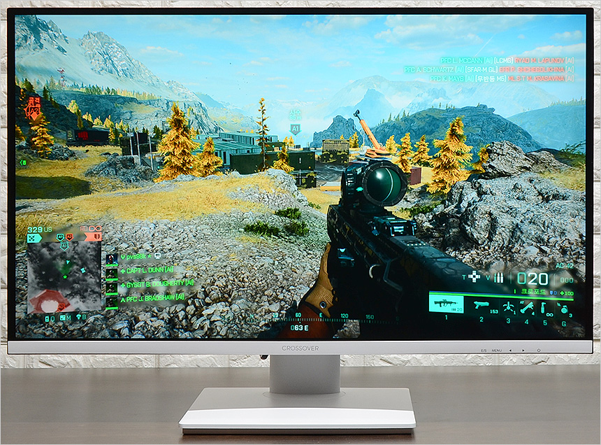 배경에 따라 컬러가 달라져 시인성을 높여주는 Ai 조준선을 제공해 사격 정확성을 높일 수 있었으며 프리싱크와 지싱크 호환 기술이 적용된 모델답게 화면 찟어짐 등의 오작동이 발생하지 않아 게임에 몰입할 수 있었다. IPS 특유의 선명함이 돋보이고 화면 크기도 커 즐겁게 게임을 즐길 수 있을 것이다.