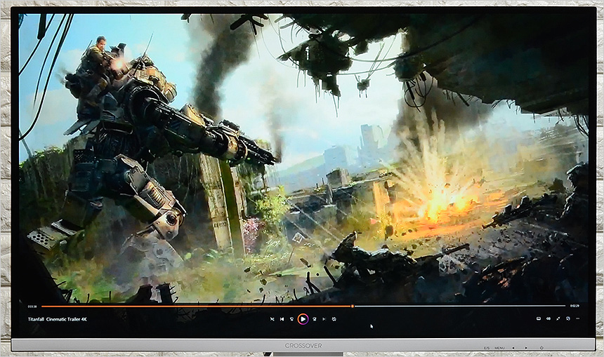 4K 동영상 파일을 재생하고 있는 모습으로 진한 컬러 표현이 인상적이었으며 스피커가 장착되어 시원시원한 사운드를 즐길 수 있었다. 고화질 동영상 감상용 으로도 유용하게 사용할 수 있는 모델이다.